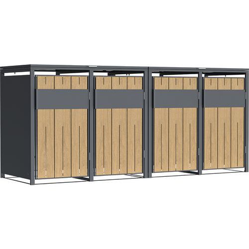 Durable modern quad bin store for discreet outdoor waste storage and easy daily use