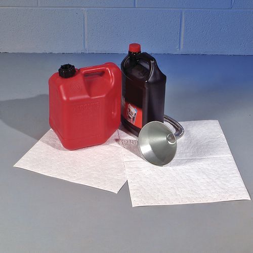 8 layer, thermally bonded construction that won’t rip, tear or fray even when saturated. 100% polypropylene, made with 50% recycled content. Exclusive dimple pattern speeds wicking of liquid throughout mat. Perforated mat is easy to tear to size so you only use what you need. Ideal for catching drips and soaking up spills, or lining tool boxes and workbenches. Absorbs oils, coolants, solvents and water.