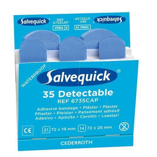 - Salvequick Pilfer-proof Plastic Plasters are convenient, high-quality adhesive bandages.