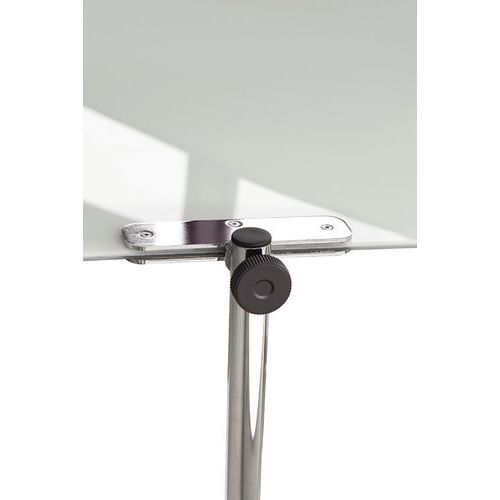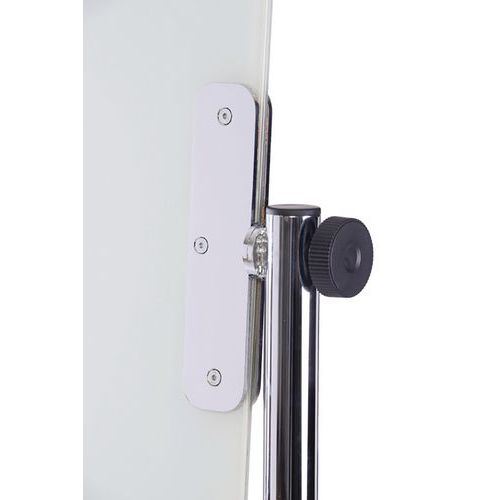 Glass surface with magnetic properties. Pivots on its horizontal axis. Board with 4 locking castors.