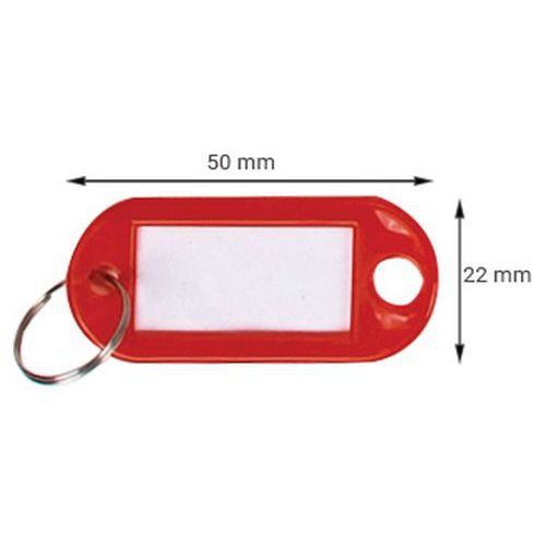 - Key ring with wide label, allowing easy key identification. Assortment of 6 different colours: red, yellow, blue, green, black and white.