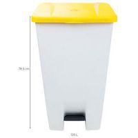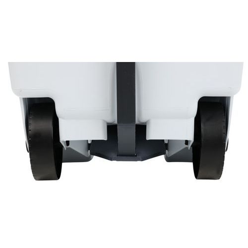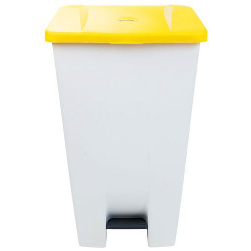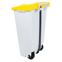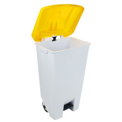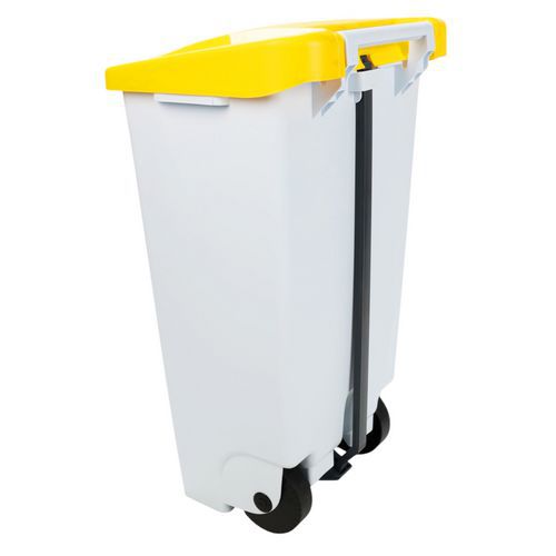 Mobile bin for efficient waste management. Equipped with two smooth wheels for optimum manoeuvrability. Features a carry handle for ease of transport. Wide pedal on the front for easy opening. Different-coloured lids for selective sorting.