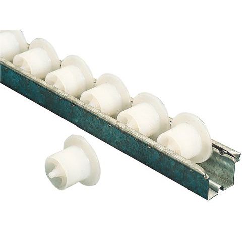Rail for plastic rollers (light loads). Producing simple and robust roller paths. Galvanised rail, strengthened with grooves. Made in Germany Customer warranty : 3 years