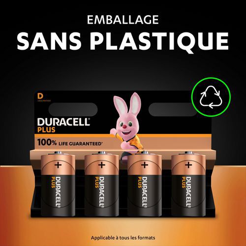| Product Name | Plus 100% D alkaline battery, Type of battery: D/LR20, Number of batteries: 4, Voltage: 1.5 V |