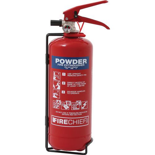 Dry powder for petrol, oil and electrical Class A, B and C fires. Capacity of 1 or 2kg.
