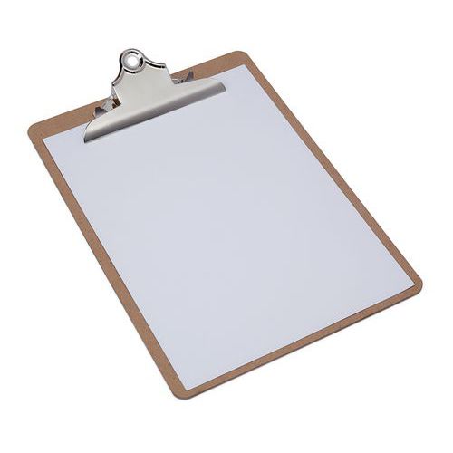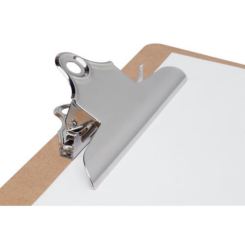 Portrait hardboard clipboard with clip. Retro clip in resistant steel with sturdy metal spring. Natural effect due to the non-treated surface. Practical: retractable fastening. Trendy design.