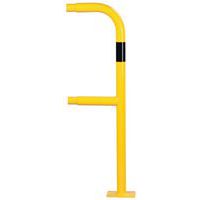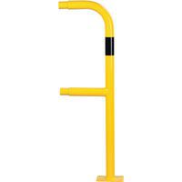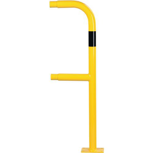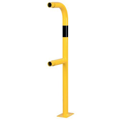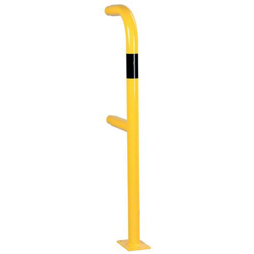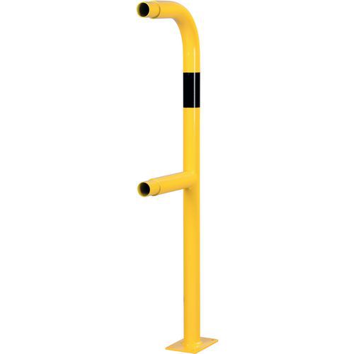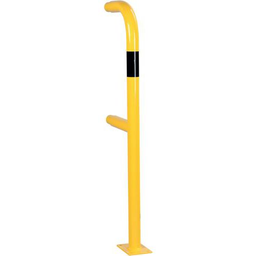 Post for modular safety barrier. Guaranteed stability thanks to its mounting plate. Galvanised for outdoor use. Good visibility thanks to the traffic safety yellow colour with black stripe. Easy to install. The individual components of the system are attached without screws.