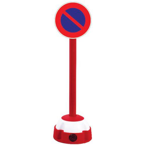 Two-tone base that can be weighted (up to 13 kg) or fixed to the floor, fitted with two reflectors for visibility at night.