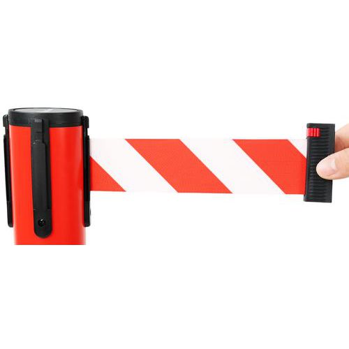 Post with PVC base and strap, 2 m - Manutan Expert Post with striped stretch strap to mark a clear barrier at a glance. This product is designed for professional use.