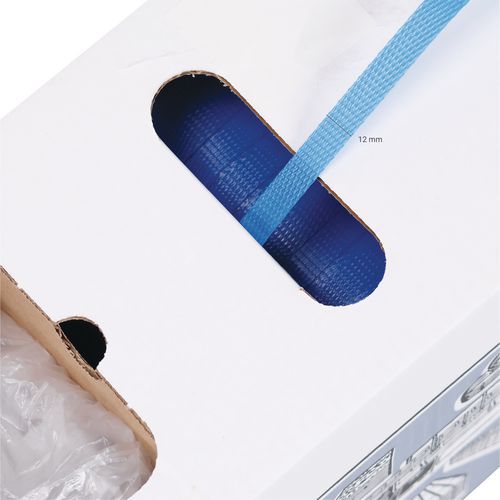 | Product Name | PP strapping case, blue, Strapping length: 600 m, Strapping width: 12 mm, Model: Dispensing box |