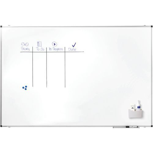 Coated steel surface. Surface for writing on with marker. Aluminium frame with dark grey plastic corners. 30-cm marker holder. Easily wall-mounted with concealed slot. Can be mounted horizontally or vertically. Supplied with mounting fixtures, pen holder and marker.