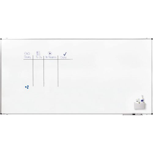 Coated steel surface. Surface for writing on with marker. Aluminium frame with dark grey plastic corners. 30-cm marker holder. Easily wall-mounted with concealed slot. Can be mounted horizontally or vertically. Supplied with mounting fixtures, pen holder and marker.