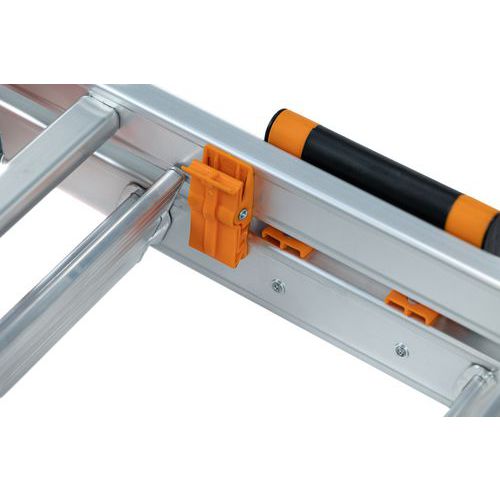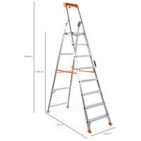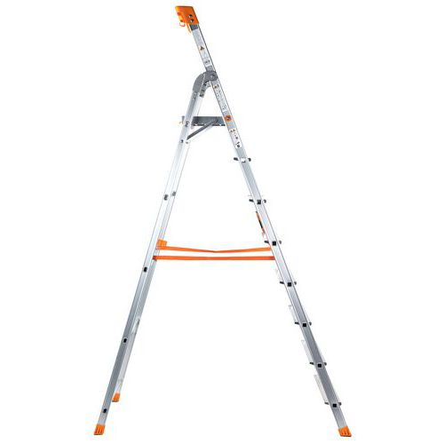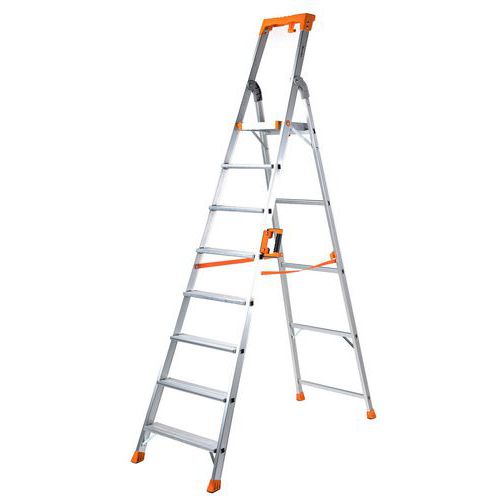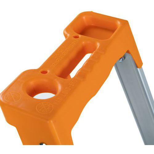 Multi-purpose tool shelf. Reinforced aluminium frame. Non-slip treads. Easy to carry and store. Complies with EN 131 and GS TUV Rheinland regulations. 10-year guarantee.