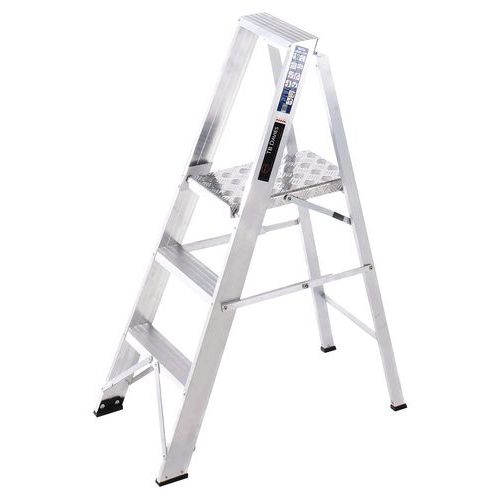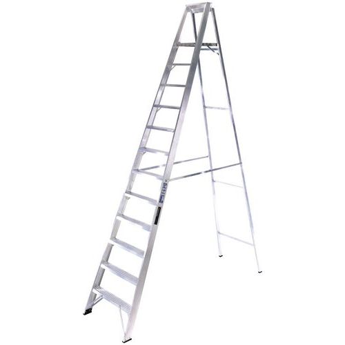 Aluminium and professional ladder with deep serrated treads, ideal for heavy-duty work.
