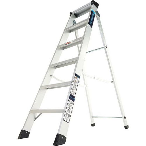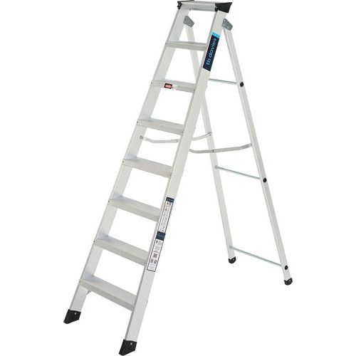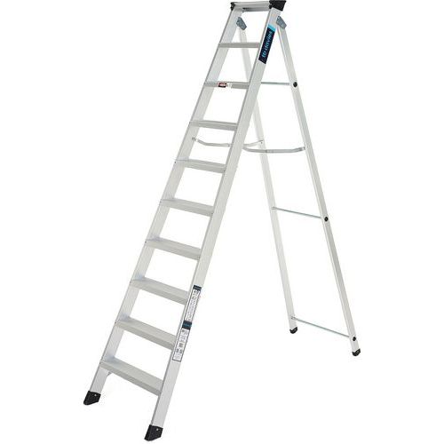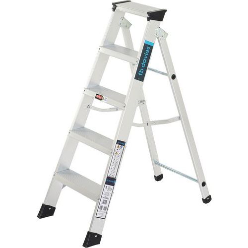 EN 131 compliant swingback ladder with integrated tool tray, ideal for workmen.