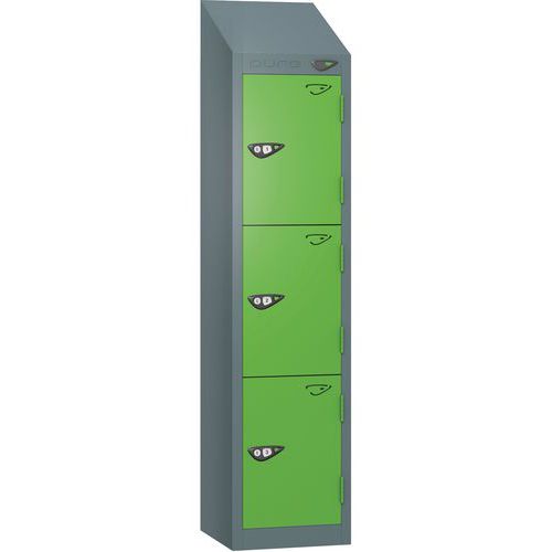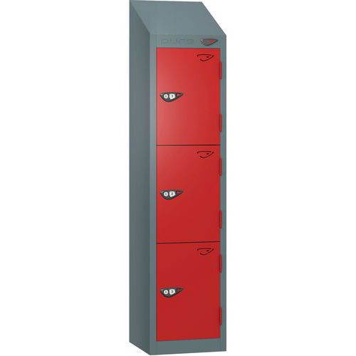 Pure 3-Door Low Sloped-Top School Locker - Cam Lock - 1200x300x300mm