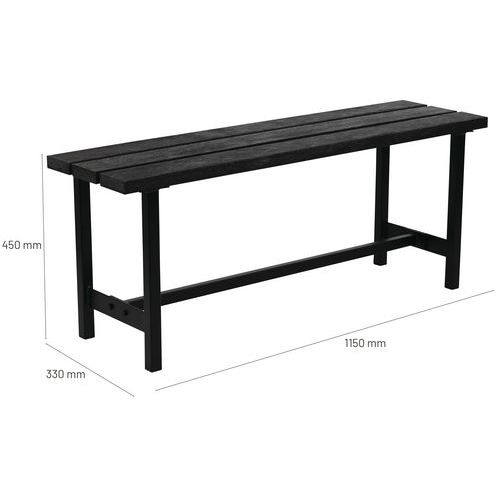 | Product Name | PVC cloakroom bench, Seating material: PVC, Width: 1150 mm, Seating colour: Black, Frame material: Steel |