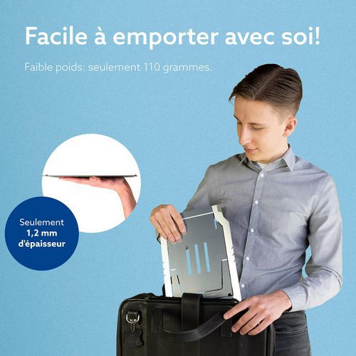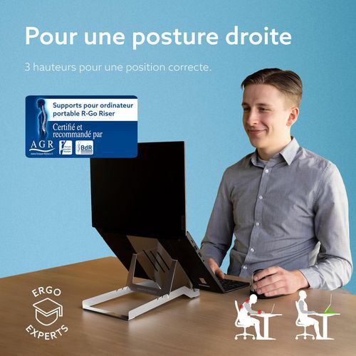 The R-Go Riser Basic Laptop Stand makes it easy to raise a laptop screen to eye level.