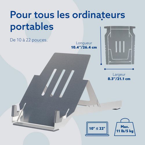 Universal laptop stand that fits all laptops from 10 to 22 inches.