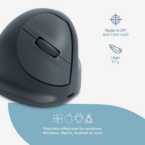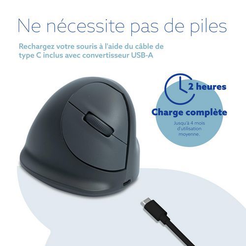 - R-Go HE Basic ergonomic vertical mouse, helps prevent repetitive strain injuries, medium-sized (hand length 165–185 mm), right-handed, Bluetooth, grey.