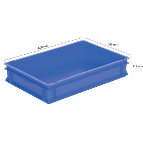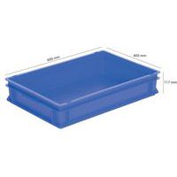 European standard stackable container. With solid walls, solid base and recessed handles.