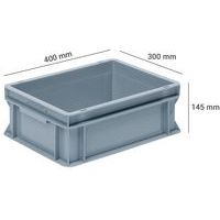 | Product Name | RAKO grey European standard stackable container, Capacity: 12 L, Stackable: yes, O/A height: 145 mm |