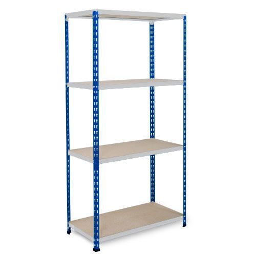 - Rapid 2 Shelving (1600h x 915w) Blue & Grey with 4 Chipboard Shelves, including protective caps and feet