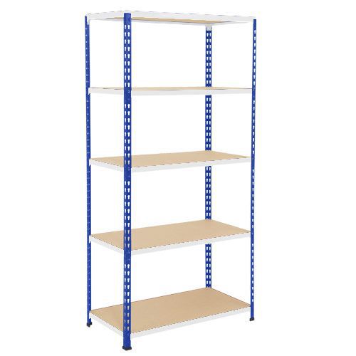 Rapid 2 Shelving (2440h x 915w) Blue & Grey with 5 Chipboard Shelves, including protective caps and feet Each chipboard shelf can hold up to 340kg Uniformly Distributed Load (UDL) Shelf depths under 610mm come with 15mm thick chipboard and depths of 610mm and over - 16mm thick chipboard 2mm thick heavy duty structural quality steel beam construction with a durable paint finish Slim beam profile maximises storage space Fast boltless assembly - All you need is a heavy duty mallet, available separately Adjustable shelves - Every 38mm All shelves can be accessed from any side as no stability bracing is required Available in a range of heights, widths, depths and colours Tested to FEM - Suitable for daily use in an industrial environment 30 Year Guarantee Remember to order tie plates for joining additional bays Can be fitted with additional shelf levels Shelving accessories include: mesh cladding, notice plates, retaining hoops and labelling.