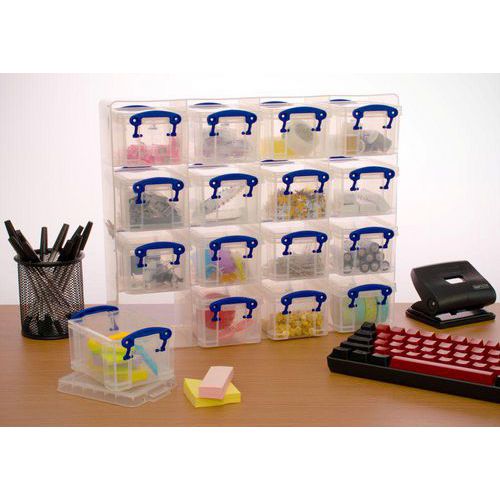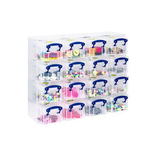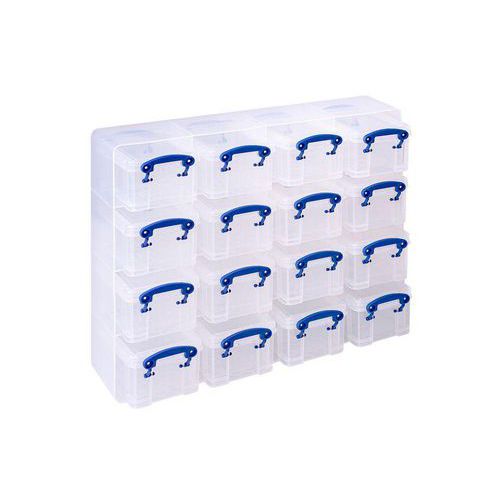 Really Useful Small Parts Storage Unit with 16 Boxes, Number of bins: 16, Bin colour: Clear
