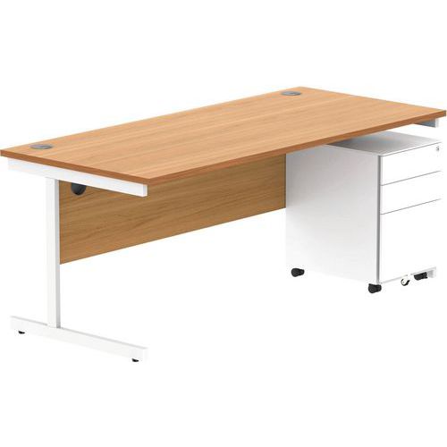Rectangular Desk And 3 Drawer Pedestal Bundle - WxD 1800x800mm - CORE