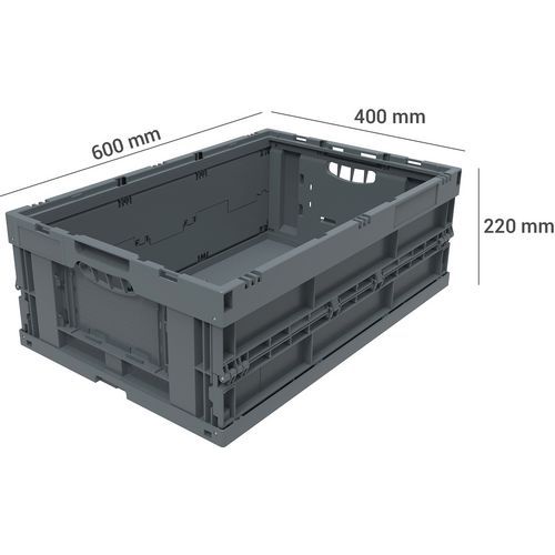 Recycled folding container, Capacity: 41 L, O/A height: 220 mm, O/A width: 400 mm, O/A length: 600 mm