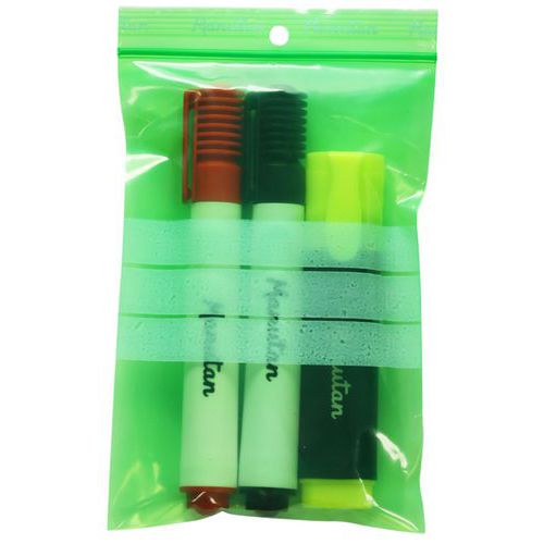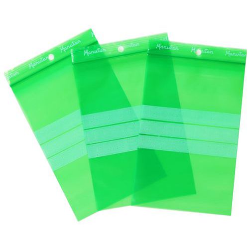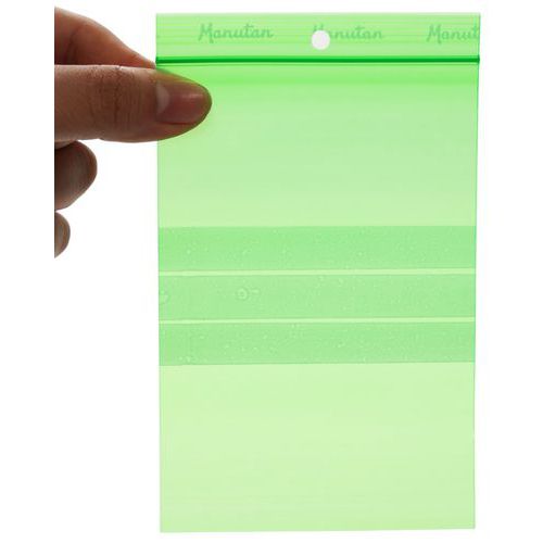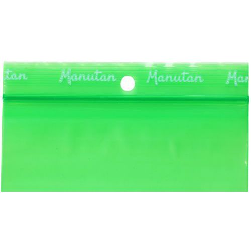 Green ziplock bag. Ribbed flap for improved grip. Bag with hole for hanging. Provides significant product protection by isolating them from dust. All Manutan products are tested and approved by our teams.