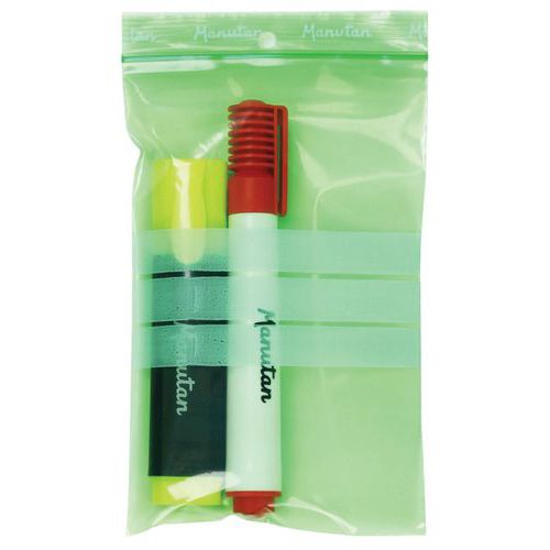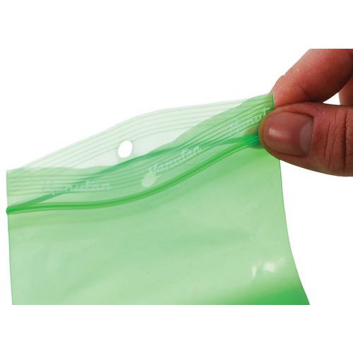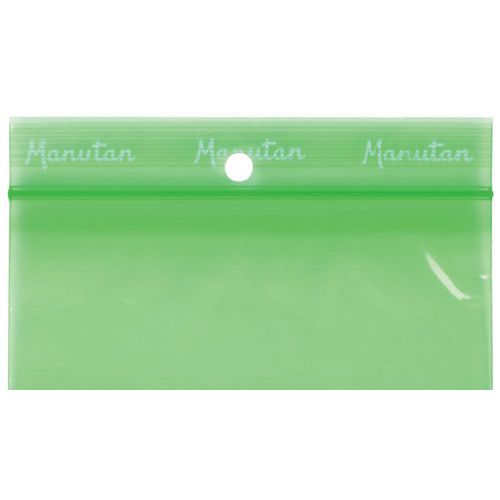 Green ziplock bag. Ribbed flap for improved grip. Bag with hole for hanging. Provides significant product protection by isolating them from dust. All Manutan products are tested and approved by our teams.