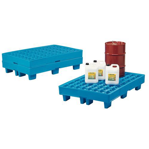 35 l: grid platform with 56 cells, 12 feet and 4 pockets, nested up to 44% when empty.