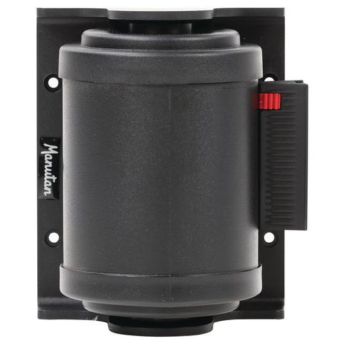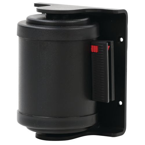 The holder for the retractable belt fastens directly to the wall. The cassette rotates 180°. Can also be used on posts. 10-year guarantee.
