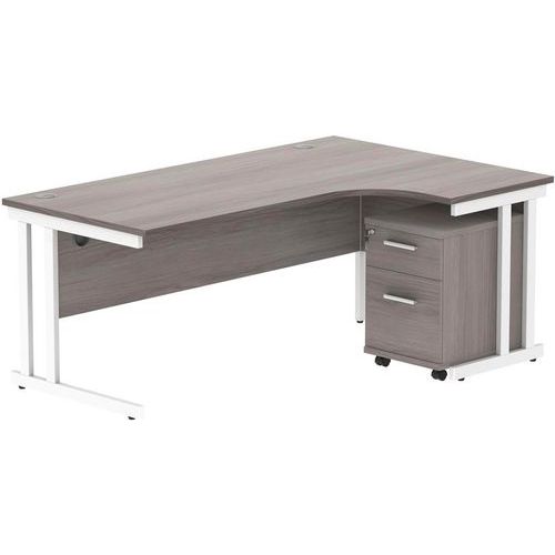 Right Hand Corner Desk - 2-Drawer Pedestal - x2 Uprights - 1800x1200mm