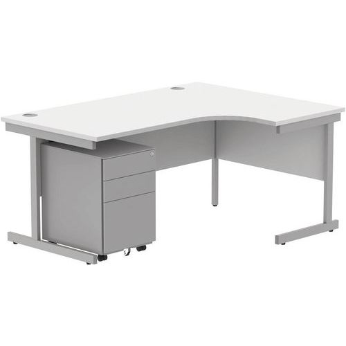 Right Hand Corner Desk & 3 Drawer Pedestal - WxD 1600x1200mm - CORE