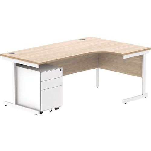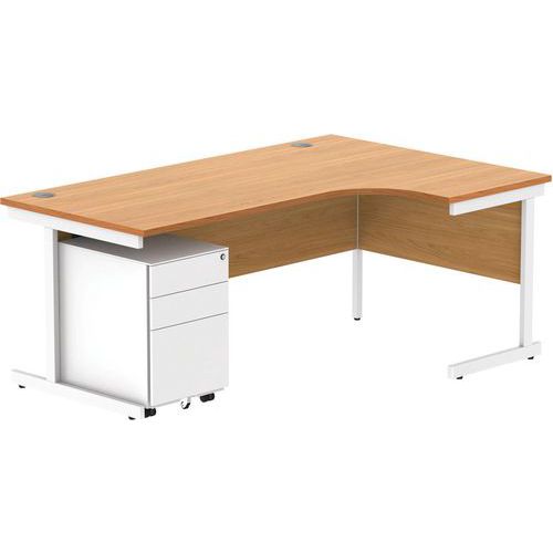 Right Hand Corner Desk & 3 Drawer Pedestal - WxD 1800x1200mm - CORE