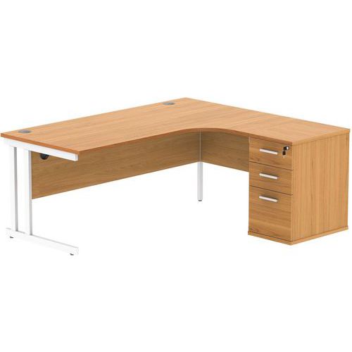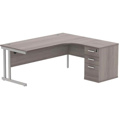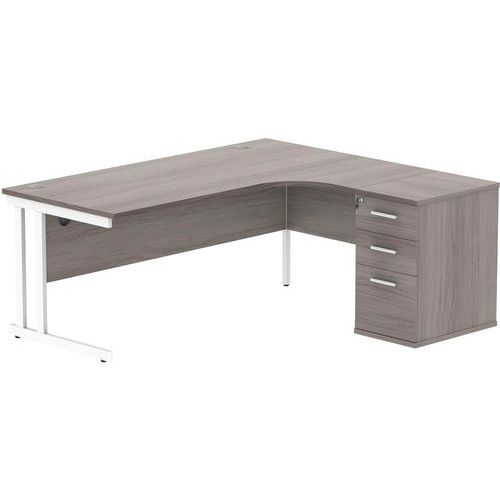 Right Hand Desk - 3-Drawer 600mm Pedestal - x2 Uprights - 1800x1200mm