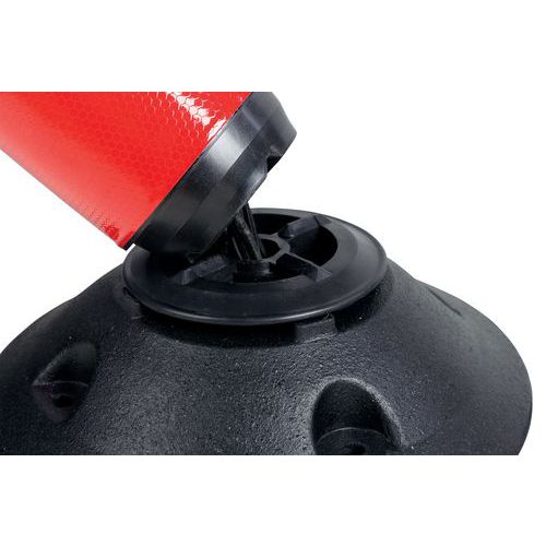 Post is ideal for separating/directing traffic as well as marking out hazardous areas. Good visibility thanks to the warning colours with reflective strips. The post folds 360° and is self-righting thanks to its flexible mechanism. The post can be removed quickly using the bayonet mount at the bottom. Easy to install.