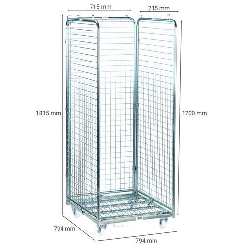 | Product Name | Roll Cage/Container, Load capacity: 400 kg, O/A height: 1815 mm, O/A length: 794 mm, Number of sides: 3 |