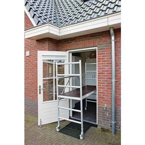 Base and extension module for scalable scaffolding. Base module A is a scaffolding tower in its own right. Modules B, C and D extend the height. Simple folding/unfolding with system of joints. Folding, rolling scaffolding that is strong and lightweight. Module A is fitted with four wheels. Customer warranty : 3 years