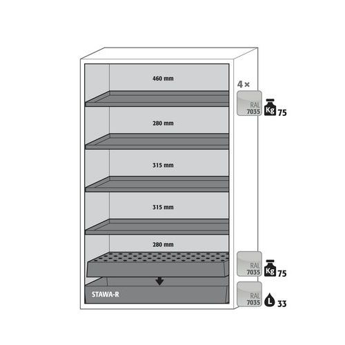 Safely stores hazardous and flammable products in your work area. Robust and durable with its solid steel exterior structure. Several compartments allow the storage of hazardous, flammable and corrosive substances in the same cabinet. For your comfort and security, the doors close automatically.