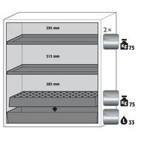 Safely stores hazardous and flammable products in your work area. Robust and durable with its solid steel exterior structure. Several compartments allow the storage of hazardous, flammable and corrosive substances in the same cabinet. For your comfort and security, the doors close automatically.