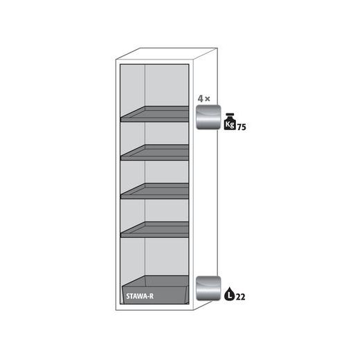 Safe storage of hazardous, flammable products in work areas. Sturdy and durable thanks to its strong external structure made from steel. Multiple compartments for storing different flammable and corrosive hazardous substances in the same cabinet. Convenient solution with automatic door closing. Lockable doors with a central locking system for protection against unauthorised use.