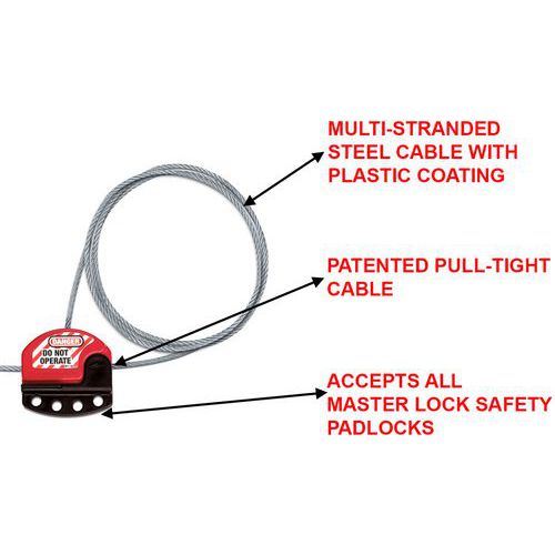 - Master Lock adjustable cable lockout that is ideal for group and multi-point lockouts.