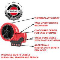 - Master Lock retractable cable lockout device, ideal for valve and other general lockouts.