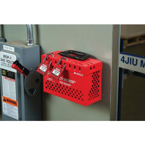 - Wall-mountable group lockout box with quick-release removable lock system so that you can transport it to the designated area.