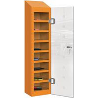 Designed for staff-only access, this locker promotes a distraction-free learning environment by ensuring controlled phone distribution. Promotes focus and productivity by reducing mobile phone distractions. Secure 8-compartment mobile phone locker with a clear polycarbonate door for visibility and monitoring. Pure BIOSHELL antibacterial coating for enhanced hygiene. Cam lock system with two keys – all doors open with a single key. Designed for controlled mobile phone storage in schools, colleges, universities, offices, and industrial environments. Manufactured under ISO 14001:2004 Environmental Management System and OHSAS 180 Health & Safety certification. Backed by a 10-year warranty for long-term reliability. Sloping top design prevents clutter and unauthorised storage. Delivered fully assembled – ready for immediate use. Carbon Zero manufacturing – certified to PAS2060:2014, supporting sustainable school infrastructure. Safety tested to BS 5733:2010 and Flame Zero fire approved. Customer warranty : 10 years