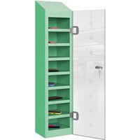 Designed for staff-only access, this locker promotes a distraction-free learning environment by ensuring controlled phone distribution. Promotes focus and productivity by reducing mobile phone distractions. Secure 8-compartment mobile phone locker with a clear polycarbonate door for visibility and monitoring. Pure BIOSHELL antibacterial coating for enhanced hygiene. Cam lock system with two keys – all doors open with a single key. Designed for controlled mobile phone storage in schools, colleges, universities, offices, and industrial environments. Manufactured under ISO 14001:2004 Environmental Management System and OHSAS 180 Health & Safety certification. Backed by a 10-year warranty for long-term reliability. Sloping top design prevents clutter and unauthorised storage. Delivered fully assembled – ready for immediate use. Carbon Zero manufacturing – certified to PAS2060:2014, supporting sustainable school infrastructure. Safety tested to BS 5733:2010 and Flame Zero fire approved.